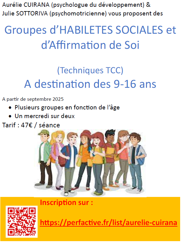 En collaboration avec Aurélie CUIRANA, psychologue à La Buisse, nous proposons des groupes d’habiletés sociales pour les 11-16 ans.